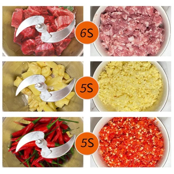 Tocatorul Electric 2L 1000W poate toca orice carne sau legume precum ceapa, rosii, fasole, cartofi, morcovi, telina dar si arahide, migdale, nuci sau alune.